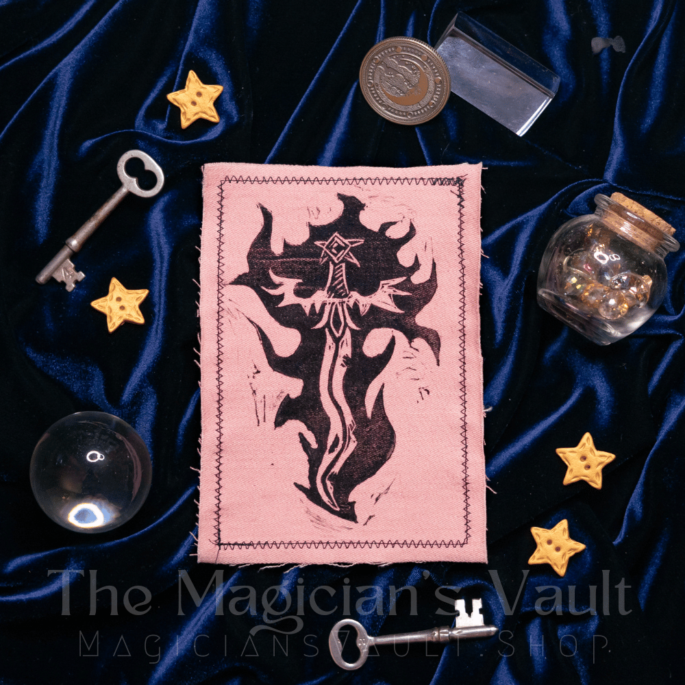 Original illustration & linocut by Eira; Each patch is hand carved and stamped with water-resistant fabric ink on a recycled fabric base. Machine sewn border is added to prevent fraying!